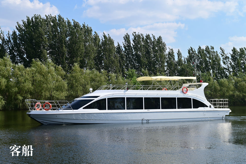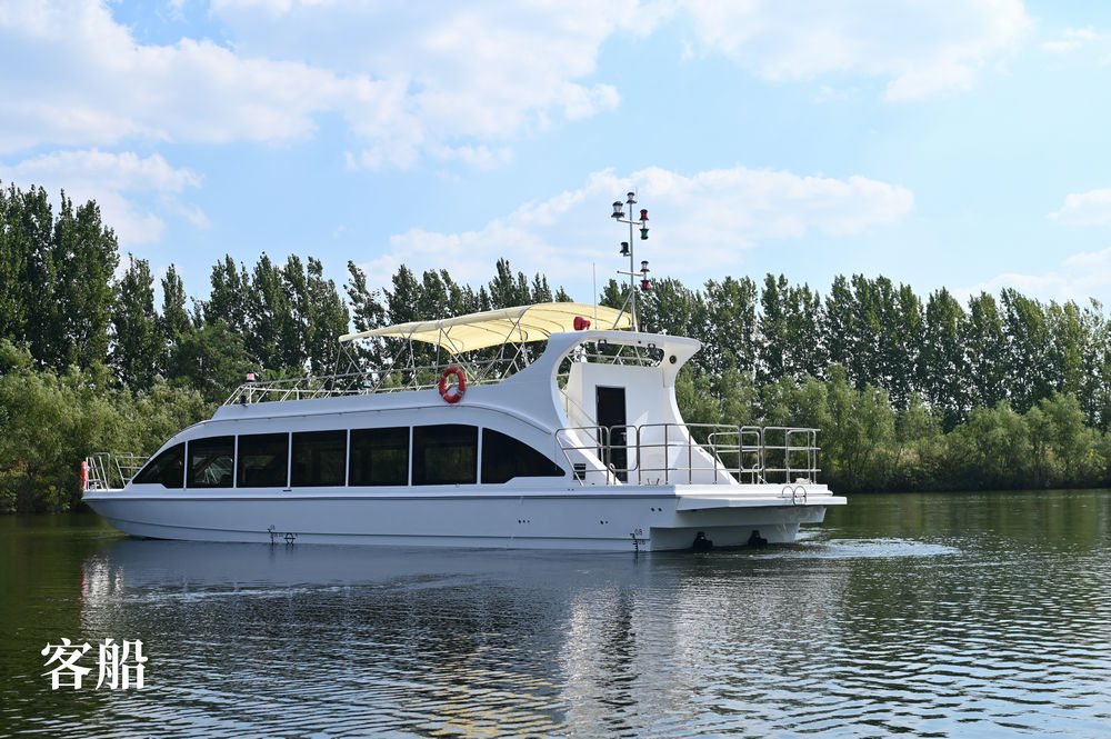 船体采用了开放式甲板设计,能够让人全方位地欣赏到水上的景色。乘坐在这艘船上时,可以清晰地听到水花拍打的声音,眼睛还能欣赏到远处壮丽的自然风光。这就是15 米双体客船所带来的独特体验。